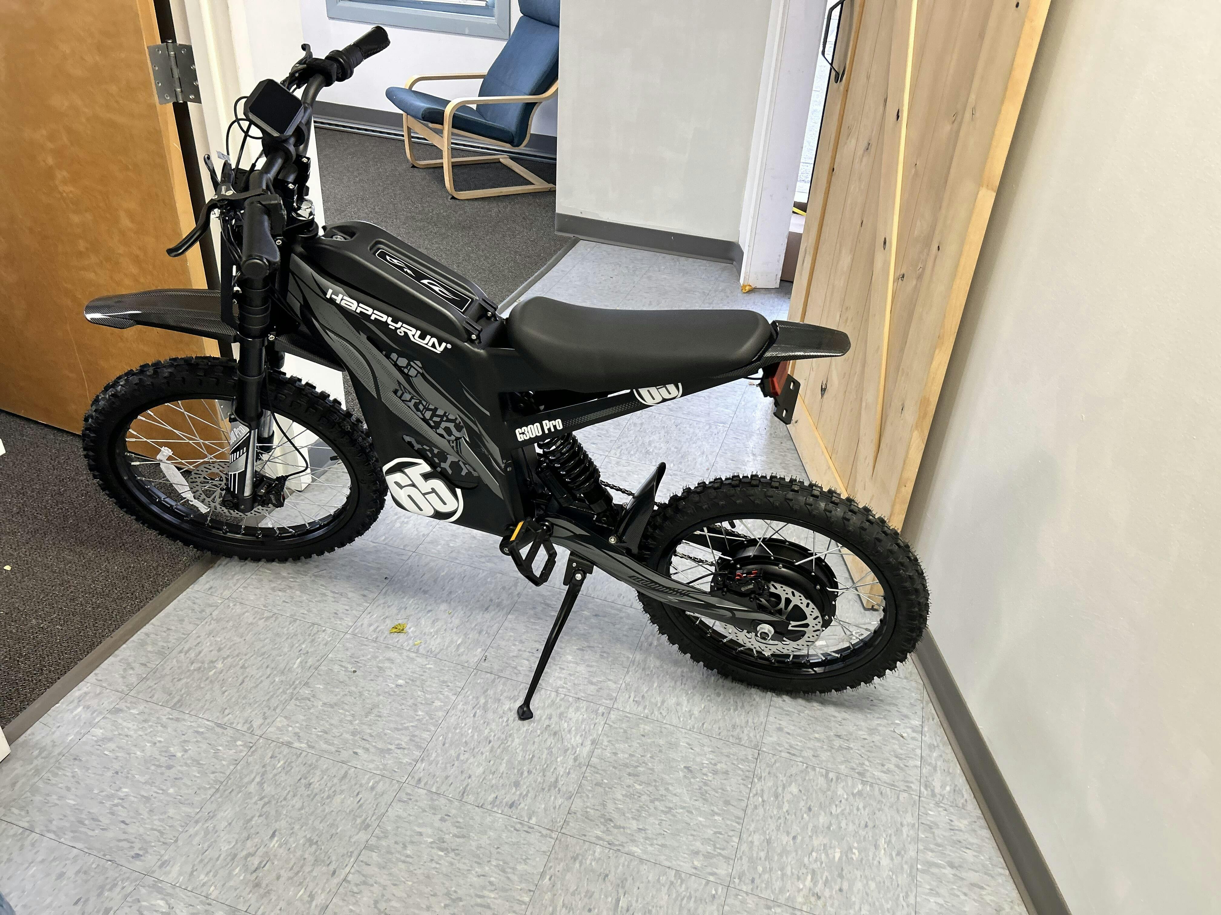 The G300 Pro performs like a light-duty dirt bike, reaching nearly 50 mph and offering a range well over 60 miles, depending on your speed. It is well-suited for dirt roads and trails, but not for heavy rocks and rugged terrain. It would also work well as a commuter bike in an urban area. The knobby tires are a bit excessive. Additionally, I have yet to figure out how to reset the trip meter. Overall, it’s an excellent bike.