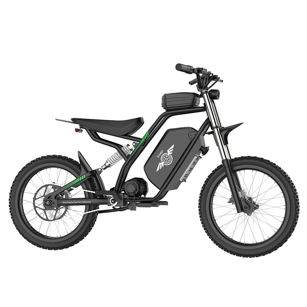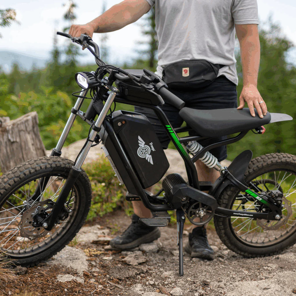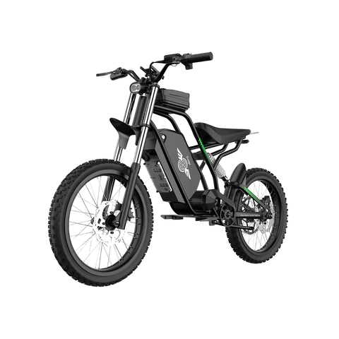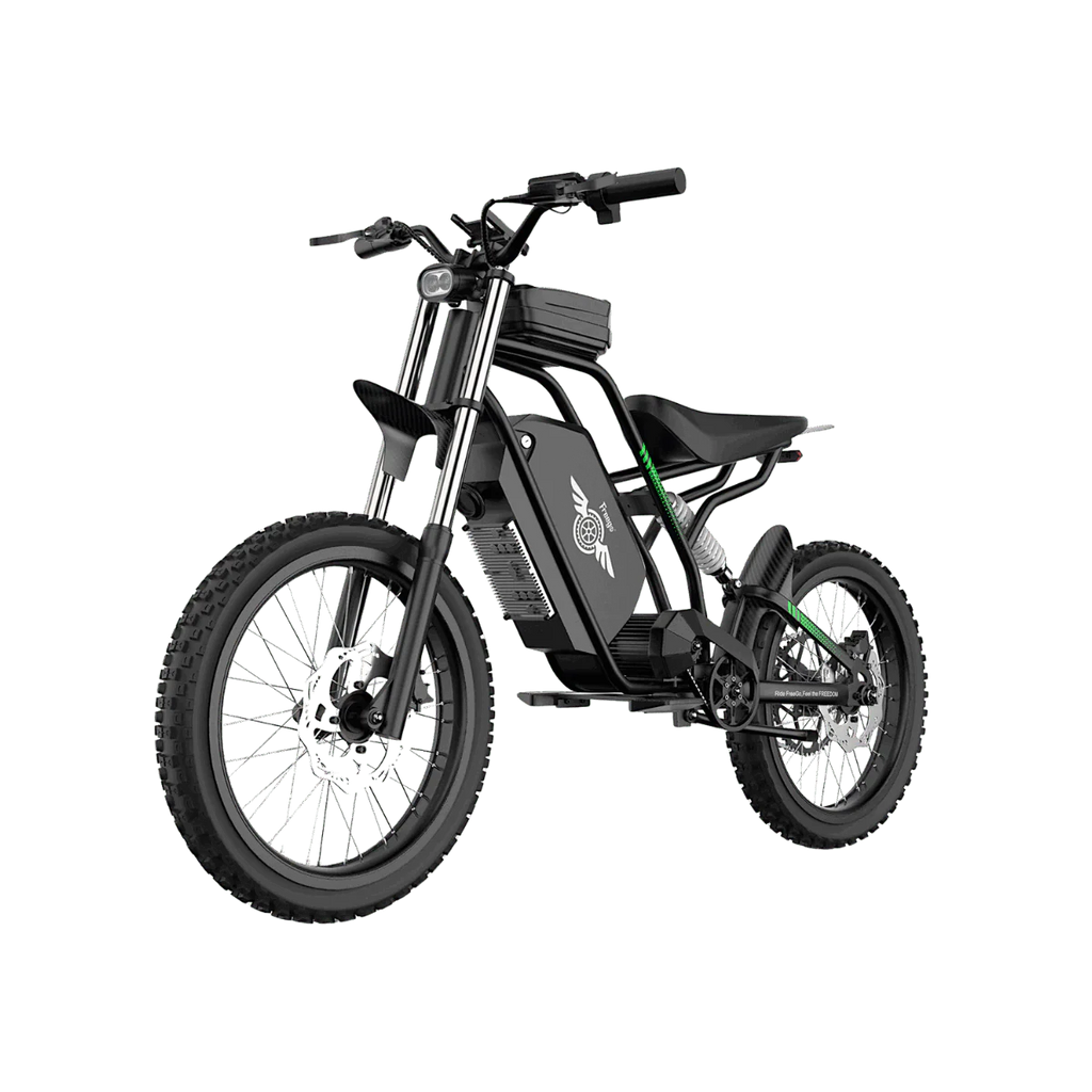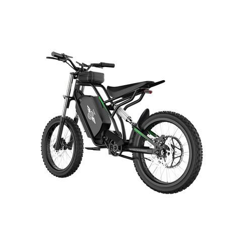 Wide 17” tires provide grip and stability, while the low seat height accommodates riders ranging from 5’1” to 5’11”. This e-bike is designed to be accessible, comfortable, and an ideal choice for anyone who is eager to step into dirt biking.