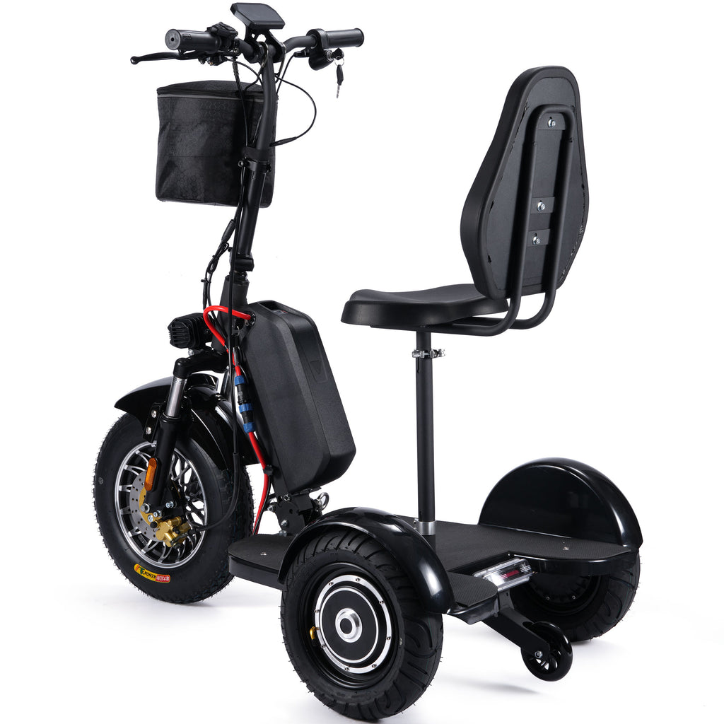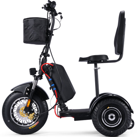 The MotoTec 48V 900 Watt Lithium electric powered trike aka personal transporter is a three wheel electric scooter that you can ride while sitting or standing. This makes it very convenient for use at events, security and warehouse floor operations or for just plain fun! It's like a three wheel Segway but at a fraction of the price!
